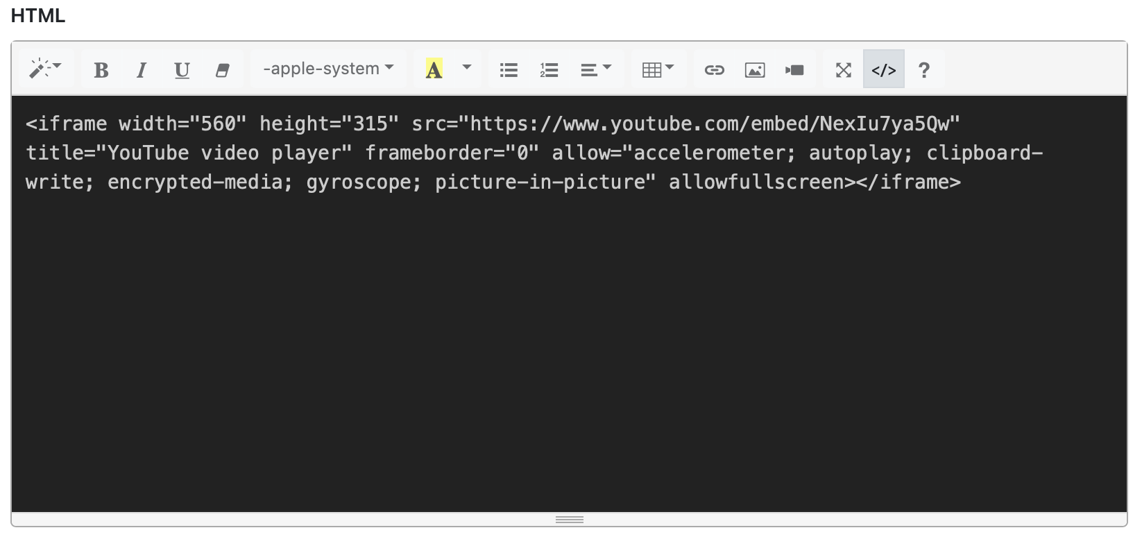 Il est possible de personnaliser l’affichage du conteneur en ajoutant du code HTML en plus de la balise iframe.