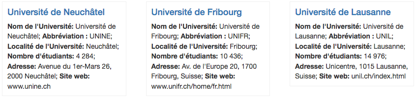 Le choix du style permet de changer l’affichage des fiches selon les styles suivants :