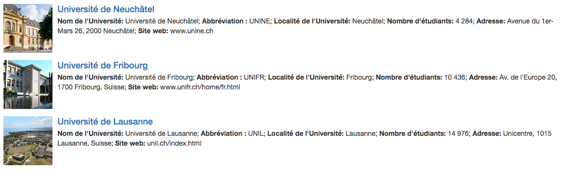 Ainsi pour changer le style d’affichage des contenus (grille d’images, grille de texte ou liste) ou pour changer les champs affichés, la création d’une nouvelle page est nécessaire.