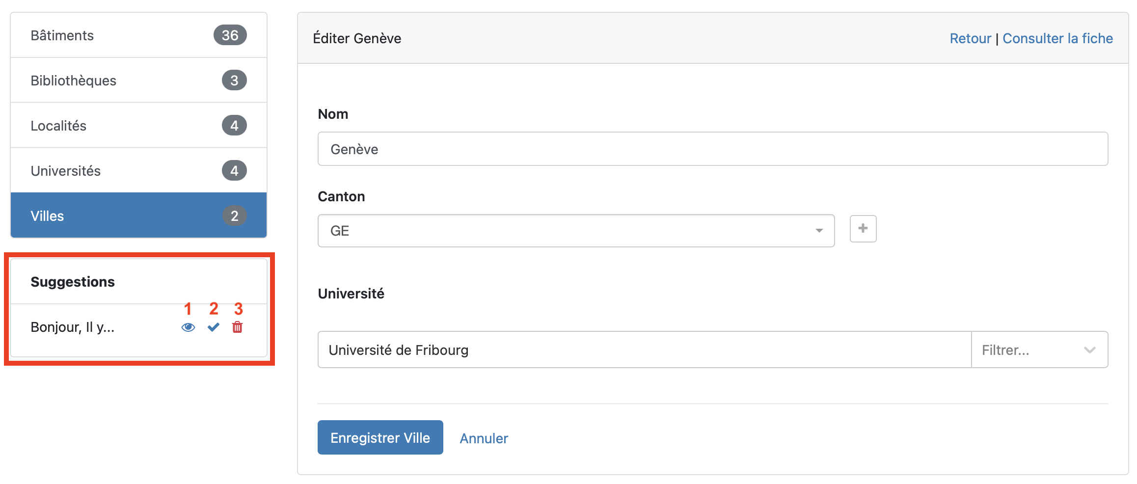 indiquant le nombre de suggestions à traiter.